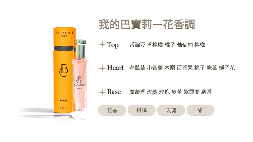 《我的巴寶莉》像雨後的倫敦街道,空氣濕潤而溫柔。香豌豆與柑橘的清新氣息輕輕展開,如微風拂過石板路,明亮而優雅。隨後小蒼蘭、木梨與桃子交織出柔軟的果香,老鸛草與梔子花讓花香顯得自然又細膩,彷彿花園在雨霧中慢慢甦醒。最後廣藿香、玫瑰與麝香沉穩落下,皮革與紫羅蘭為氣味添上一抹成熟的深度。《我的巴寶莉》是一種溫柔而自信的氣息,如一件經典風衣在風中輕輕擺動,優雅、自在,帶著屬於自己的氣質。