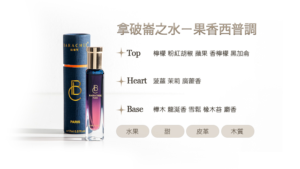 《拿破崙之水》像一場氣勢昂然的遠征,從第一步就帶著自信與野心。香氣初現,檸檬與香檸檬的明亮酸香交織著蘋果與黑加侖的甜潤,粉紅胡椒輕輕點燃,彷彿清晨整裝待發的瞬間,空氣中充滿可能。隨後,菠蘿的果香與茉莉的柔和浮現,廣藿香為整體添上厚度,如同在行進中逐漸凝聚的意志。最後,樺木與雪鬆帶來乾燥的木質輪廓,龍涎香、橡木苔與麝香低聲收尾,留下皮革般沉穩而悠長的氣息。這是一款在甜美與力量之間取得平衡的香味,安靜卻令人記住。